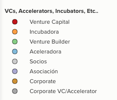 - 6 Corporate VC/Aceleradoras/Incubadoras. Las corporaciones están cada vez más activas en el ecosistema de startups para tener visibilidad y acceso directo a innovación en productos, servicios y modelos de negocio. Además de estas 6 VCs/Aceleradoras, existen muchas más iniciativas corporativas de inversión en startups dentro de otro tipo de esquemas.