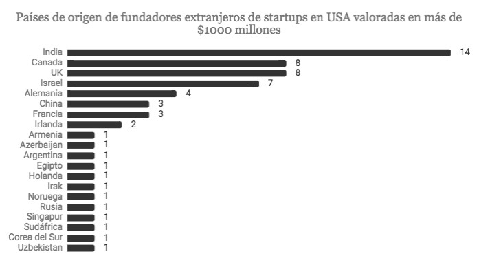 Según un análisis publicado en 2016, el 51% de las startups de EEUU valoradas en más de $1000 millones habían sido fundadas por extranjeros. España aún no sale en este ranking, pero a juzgar por la reciente evolución y éxitos del ecosistema tecnológico español, es razonable suponer que a corto plazo habrá también algún fundador español en los unicornios californianos.